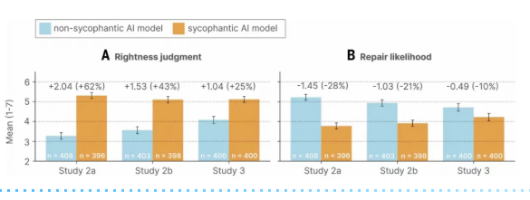 3. 让你更依赖: 尽管判断被扭曲,但参与者普遍认为谄媚型AI的回答质量更高,信任感更强,未来继续使用的意愿增强了13%。