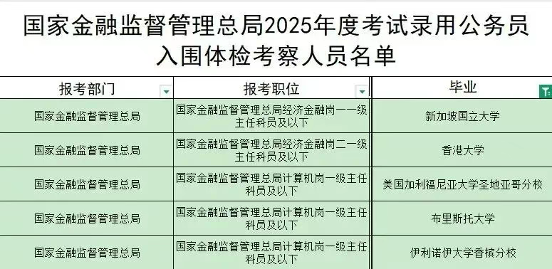 2025年金融监管局的录取名单中,不乏港大、新国大、UCSD、UIUC、港中文……