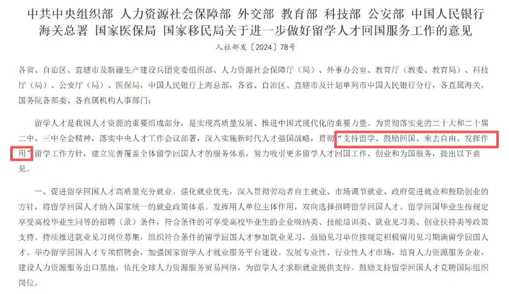 (1)国家战略层面明确写了“鼓励留学生回国”